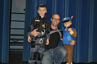 Not too far away from the SWAT team and the Puppy Patrol, Ironman was carting the Police to the car....to his carseat, actually!